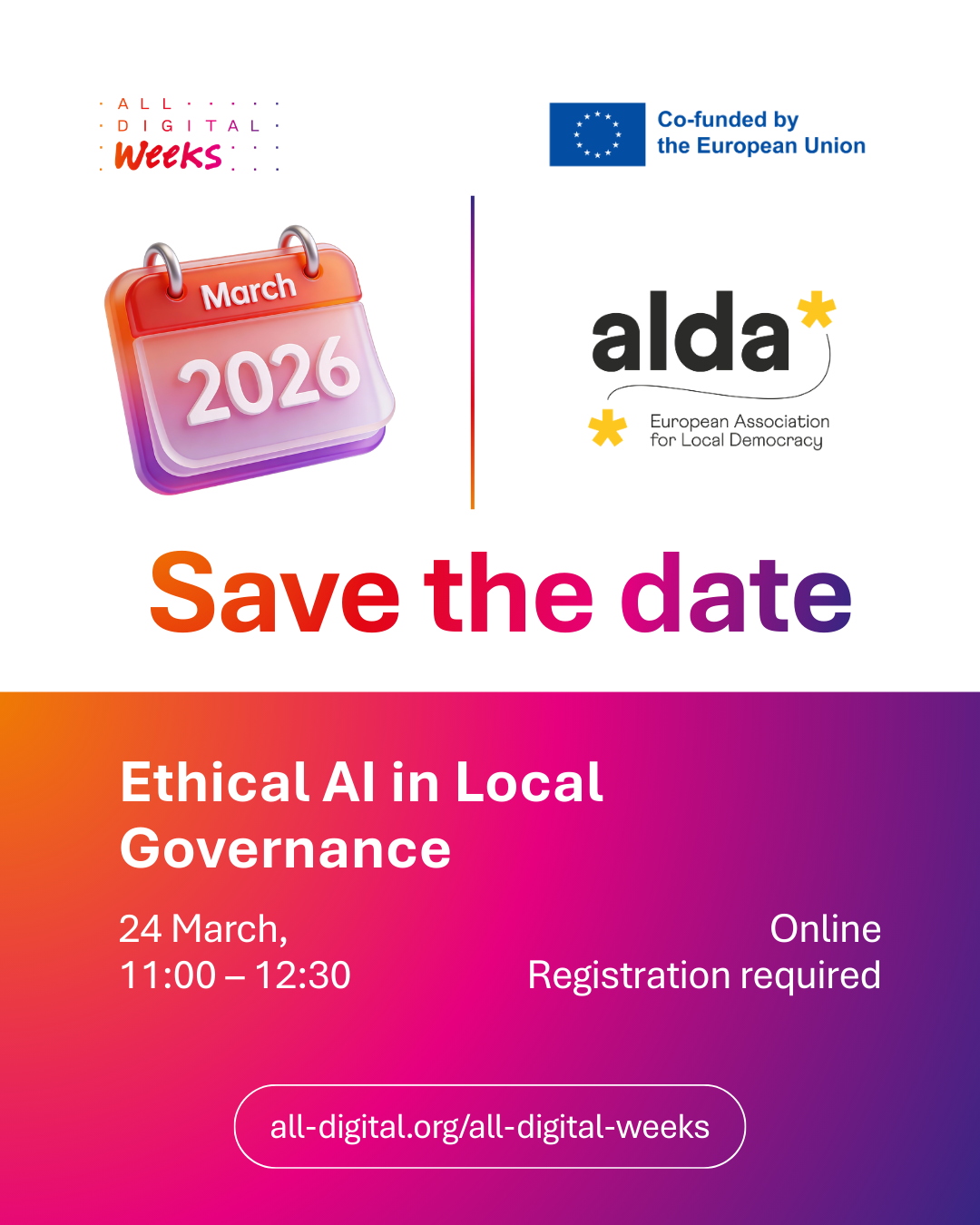 Join ALDA’s Digital & Innovation Hub for an interactive online workshop on “Ethical AI in Local Governance – Opportunities and Safeguards for Communities” as part of the pan-European All Digital Weeks 2026 campaign (9–25 March), co-funded by the European Commission and centered on “Digital well-being for a competitive Europe.”
