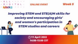 30 Mar Improving STEM and STE(A)M skills for society and encouraging girls’ and women’s participation in STEM studies and careers 30 Mar, 2022 Posted at 17:42h in by Afonso Araujo Print page 0 Likes